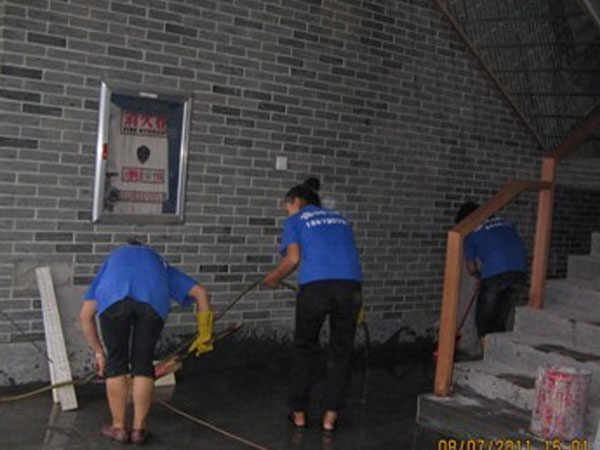 迪邦保潔公司人員正在為“金玉滿堂酒店”做開荒保潔。